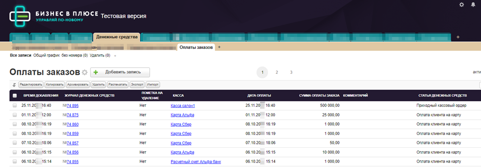 Оплаты заказов в системе "Бизнес в Плюсе"