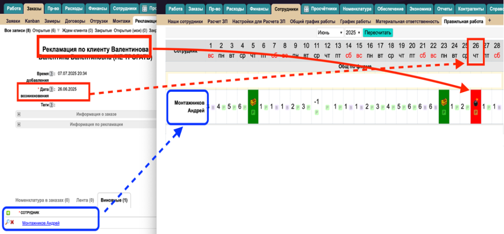 Например: у сотрудника интервал правильной работы 7 дней, дата начала очередного интервала правильной работы 6.06.25.
