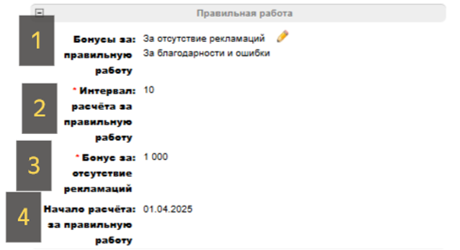 4. Начало расчета за правильную работу. С указанной даты начнёт формироваться отчет за правильную работу.