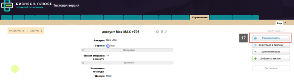 17. После сохранения записи нажимаем кнопку «Редактировать»