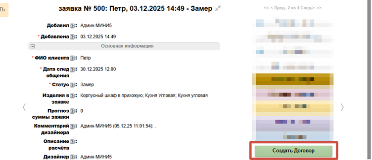 По мере продвижения заказа в компании от заключения договора до установки готового изделия, статус записи будет меняться.