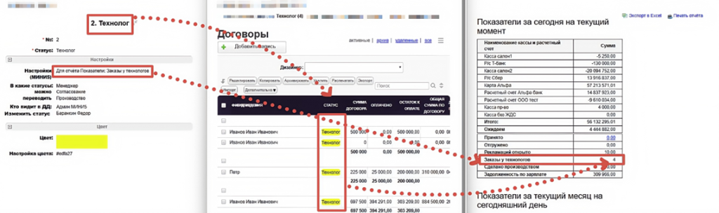 Статус в "Договорах" дает представление о том, на каком этапе находится заказ.