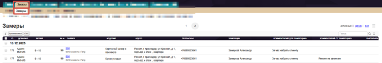 Информация в этой таблице появляется автоматически после назначения замера в Заявке или Договоре. На каждое изделие будет создана отдельная запись в таблице "Замеры". Это позволит не запутаться в замерах технологам (конструкторам).