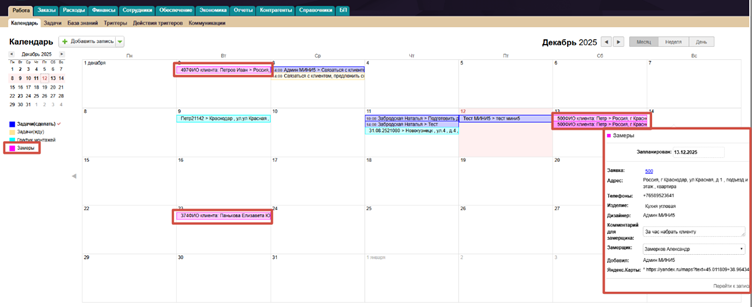 Многие компании используют «Календарь» (который находится в категории «Работа») для планирования работ по замерам. В нем отображаются все невыполненные замеры.