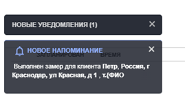 После того, как указана дата выполнения замера, менеджеру, ответственному за заказ, приходит уведомление о выполнении замера: