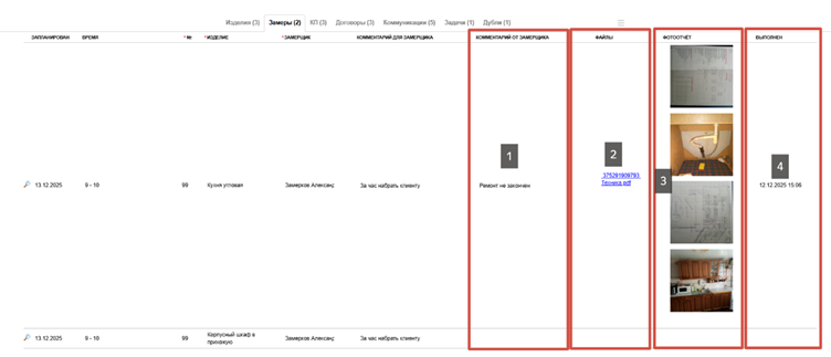 1. Комментарий от замерщика – если нужно указать важную информацию о замере