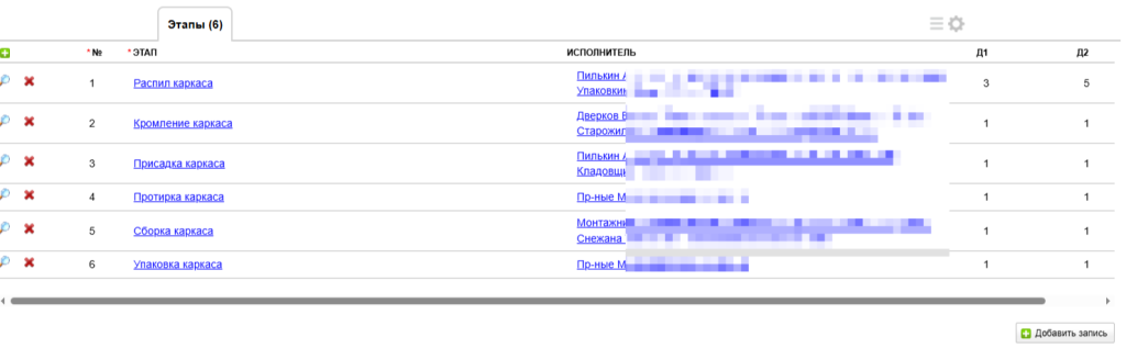 Подтаблица "Этапы".