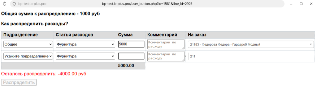 5. Кнопка "Распределить". При нажатии создаются записи в таблице "Расходы общие". На каждую строку своя запись расхода.