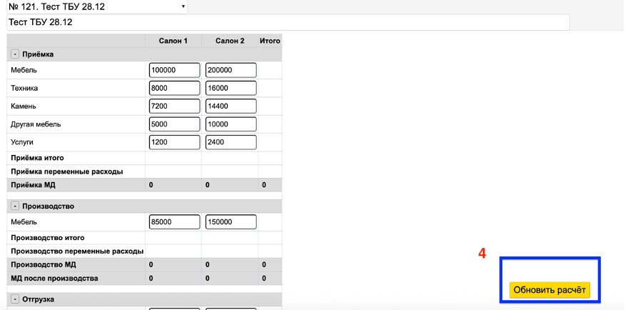 4. Нажать «Обновить расчет».