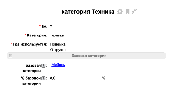 -% базовой категории: указывается для НЕ базовой категории, обозначает какой процент занимают объемы продаж/производства/отгрузки текущей категории по отношению к базовой (например, для Техники процент составляет 8% по отношению к Мебели).