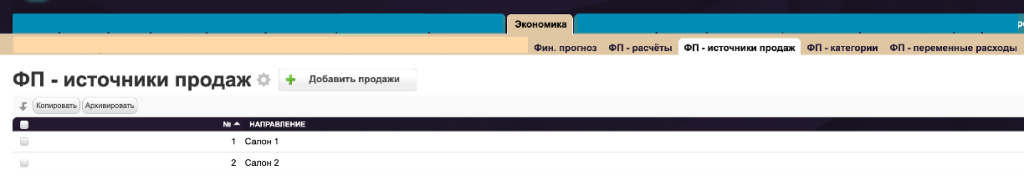 Таблица расположена в категории «Экономика». В таблицу нужно добавить все подразделения продаж компании. Затем эти данные используются в отчете «Фин. прогноз».