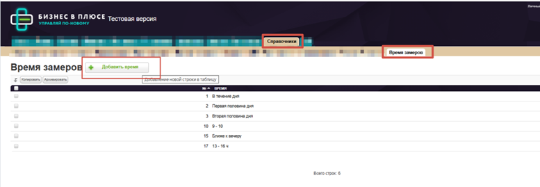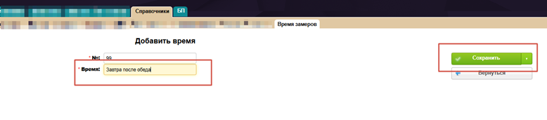 Временной интервал или точные часы нужно добавить в справочник «Время замеров». Нажимаем «Добавить запись".