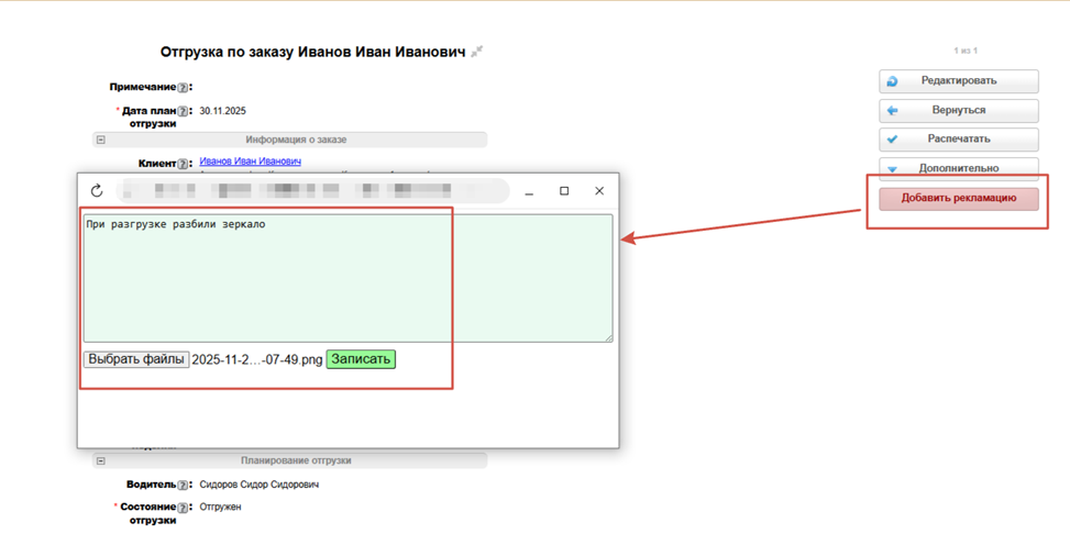 ДД "Добавить рекламацию" нужно для фиксации рекламации на этапе отгрузки.