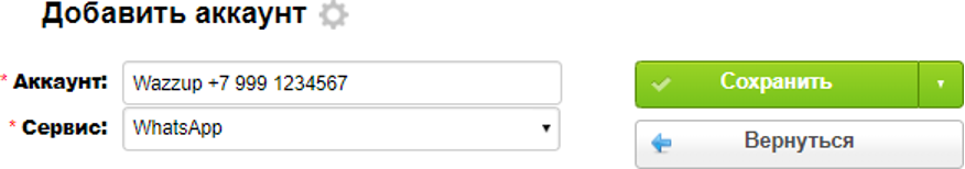 4. Далее нужно в системе Бизнес в плюсе в разделе "Аккаунты" добавить указанные каналы, и далее указать название канала и сервис (ВК/WhatsApp/Instagram/ и т.д.).