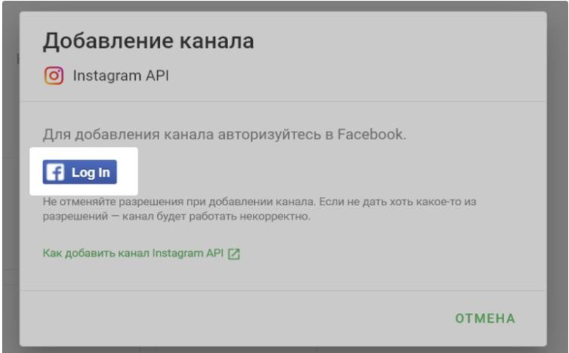 Чтобы подключить Instagram API, вам надо залогиниться в Facebook. Если вы в России — включите VPN, иначе зайти в Facebook не получится.Добавить канал в личном кабинете Wazzup