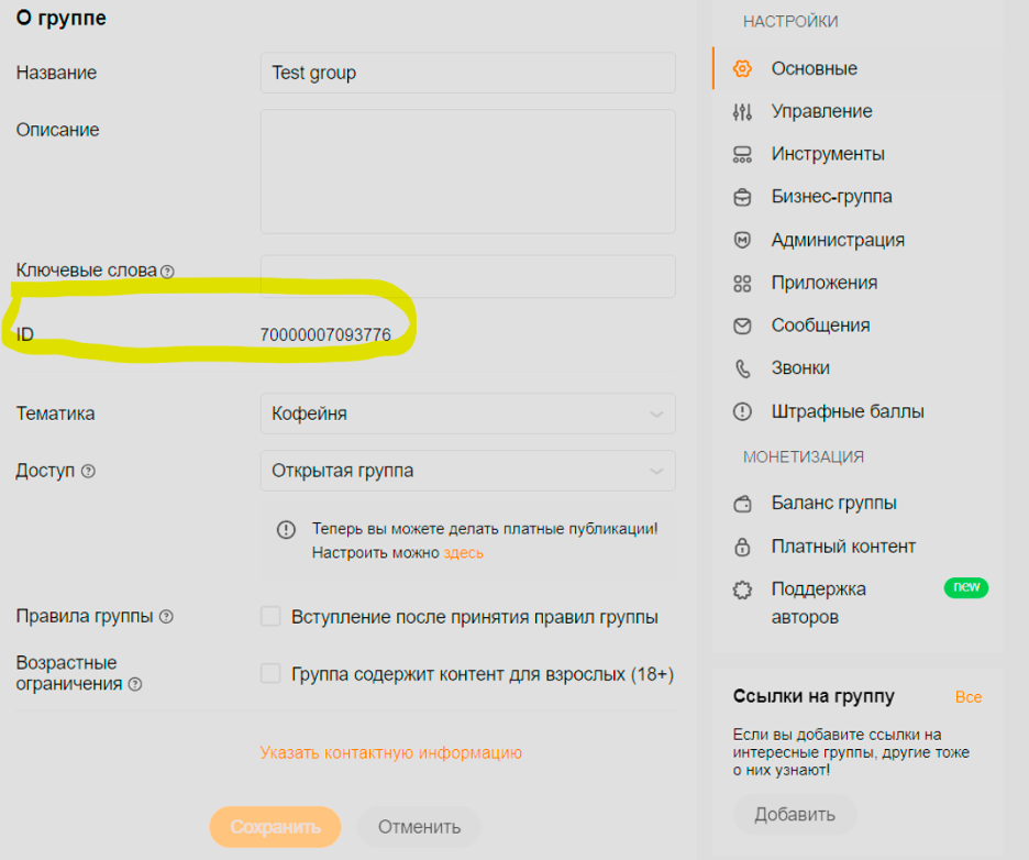 2. Скопируйте ID группы: