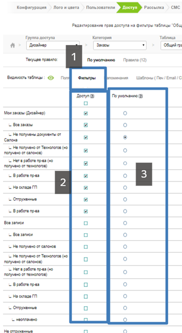 2. Указываем флаги напротив фильтров, для которых открываем доступ.
