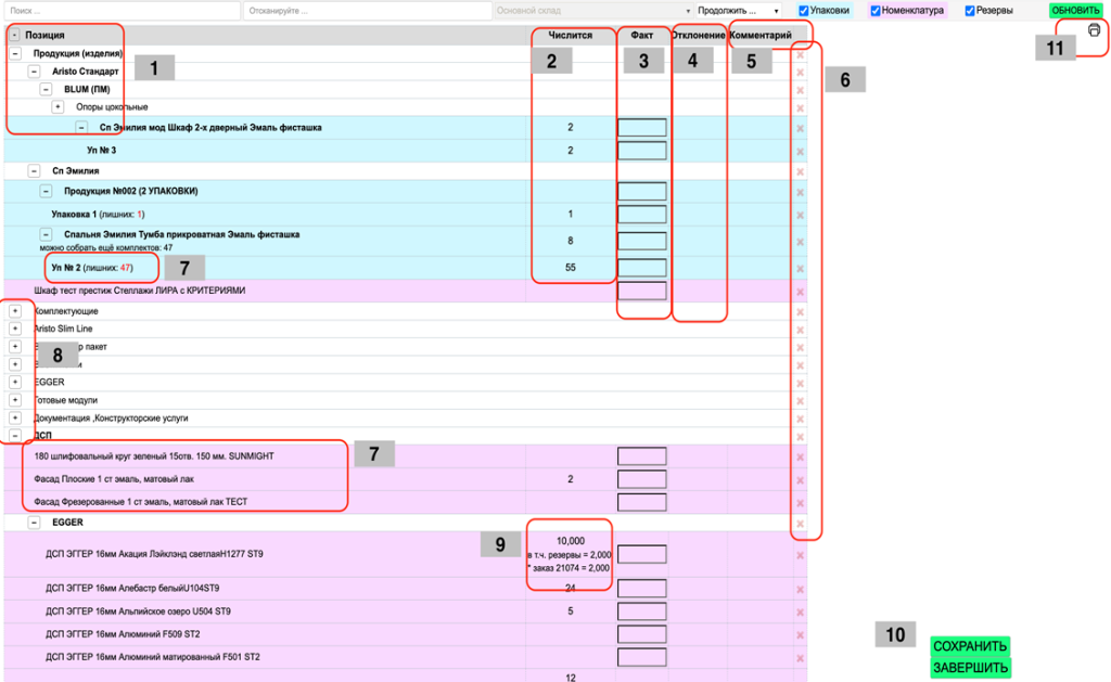 С данной таблицы сотрудник начинает работу по инвентаризации.