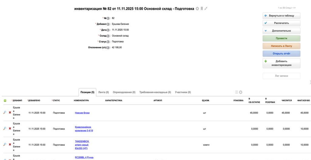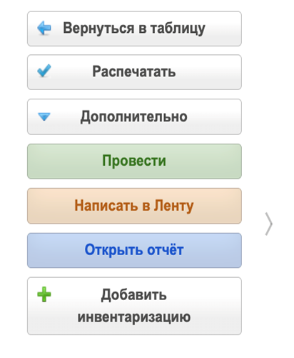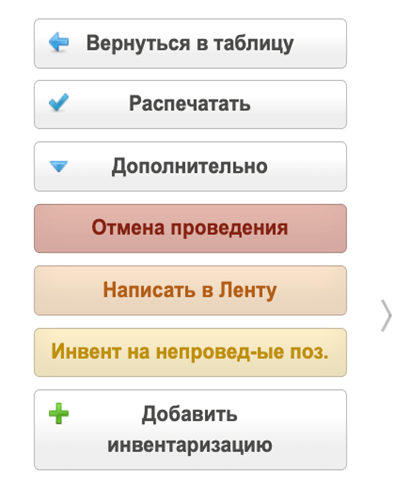 После проведения записи в таблице Инвентаризация доступны следующие доп.действия: