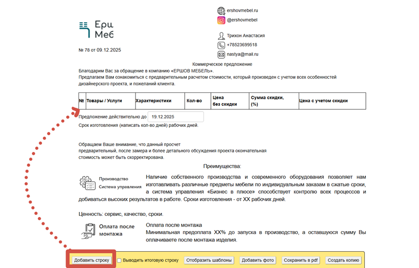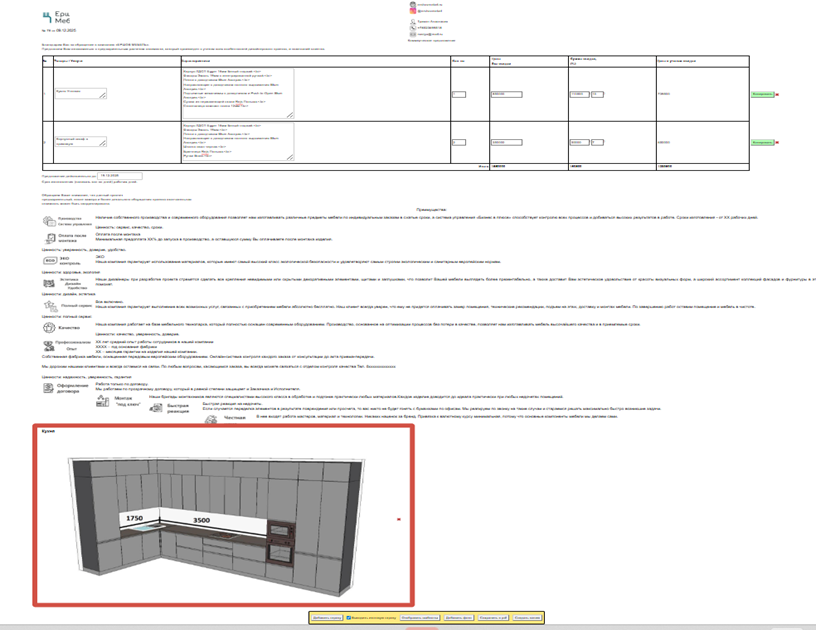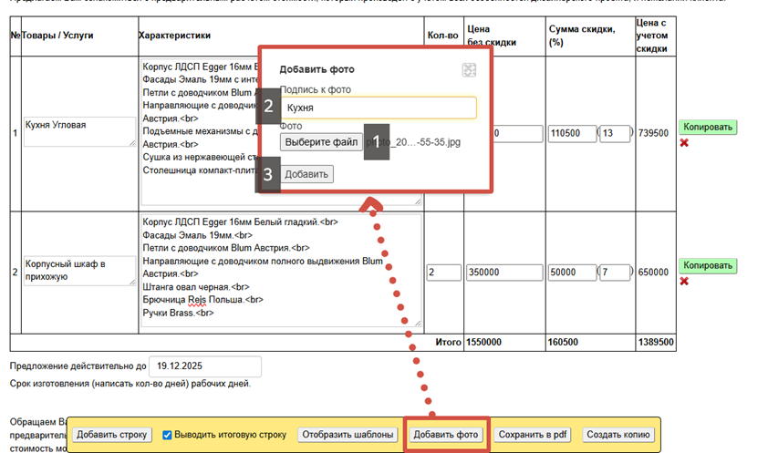 12. Так же есть возможность добавление фото или эскизов изделий в КП.
