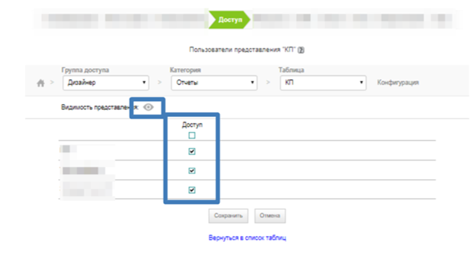 У всех сотрудников, работающих с отчетом, должны стоять флаги напротив их фамилий, а видимость представления быть "серой".
