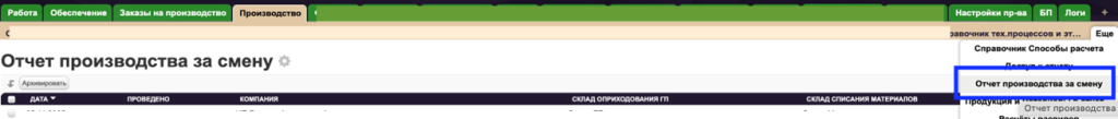 Отчёт производства за смену в системе "Бизнес в Плюсе"
