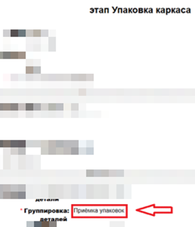 В категории Пр-во, в таблице «Справочник Этапы» например у этапа «Упаковка каркаса» в поле «Группировка деталей» выбираем значение «Приемка упаковок»: