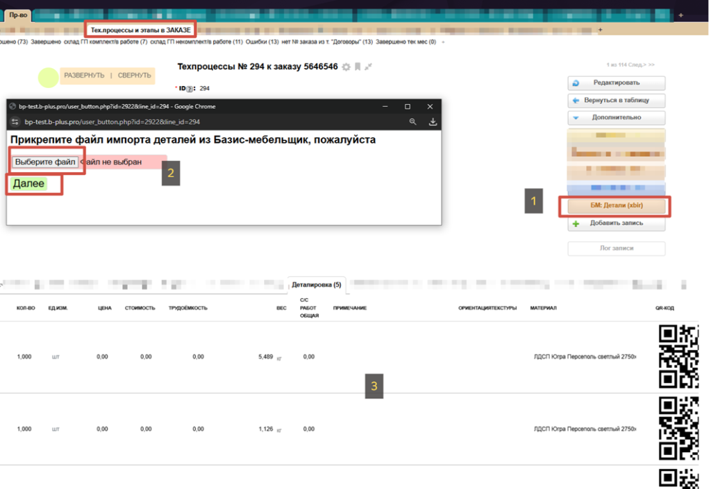 1. Нажимаем Доп. действие «БМ: детали (xbir)».