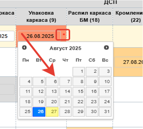 12. Этап не выполнен и дата план Сегодня. Оранжевый фон. При наведении подсказка - Дата плановая, какие работы в этапе. |