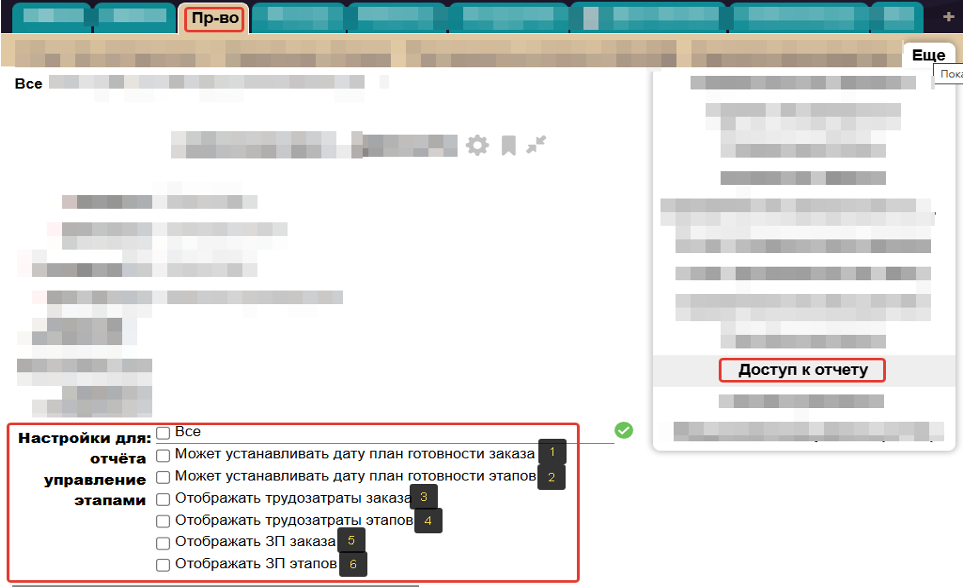 В таблице Доступ к отчету есть возможность установить настройки для сотрудника: