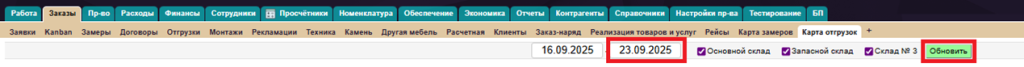 7. Чтобы сформировать список заказов для отгрузки на конкретную дату, выставляем ее и обновляем отчет.