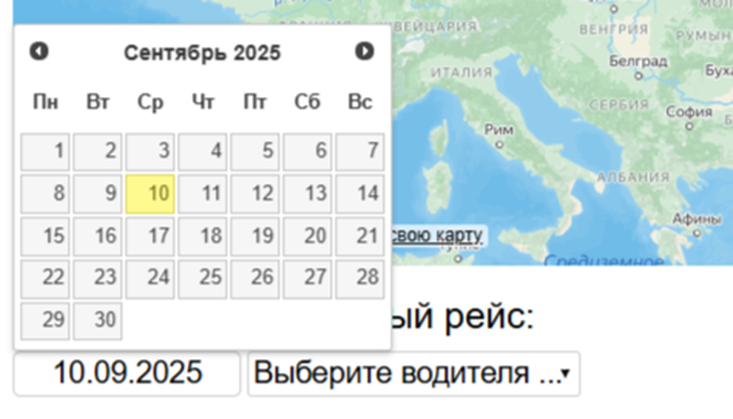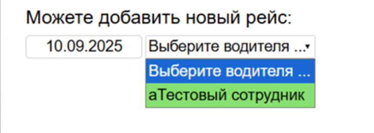 Далее выбираем водителя для этого рейса (например, у вас несколько водителей, которые поедут в один день, и для каждого можно сформировать свой рейс и свой порядок выгрузки из машины).